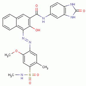 Aliases:2-Napthalenecarboxamide, N- (2,3-dihydro-2-oxo-1H-benzimidazol-5-yl) -3-hydroxy-4 - ((2-methoxy-5-methyl-4 - ((methylamino) sulfonyl) phenyl) azo) -; 2-Napthalenecarboxamide, N- (2,3-dihydro-2-oxo-1H-benzimidazol-5-yl) -3-hydroxy-4- (2- (2-methoxy-5-methyl-4 - ((methylamino) sulfonyl) phenyl) diazenyl) -; N- (2,3-Dihydro-2-oxo-1H-benzimidazol-5-yl) -3-hydroxy-4 - (((2-methoxy-5-methyl-4 - ((methylamino) sulphonyl) phenyl) azo) naphthalene-2-carboxamide; 12516; Scarlet jero; Permanen Carmine HF4C; Peony Red [HO]; ; (4Z) -4- {2- [2-methoxy-5-metil-4- (methylsulfamoyl) phenyl] hydrazinylidene} -3-oxo-N- (2-oxo-2,3-dihydro-1H-benzimidazol-5 -yl) -3,4-dihydronaphthalene-2-carboxamide